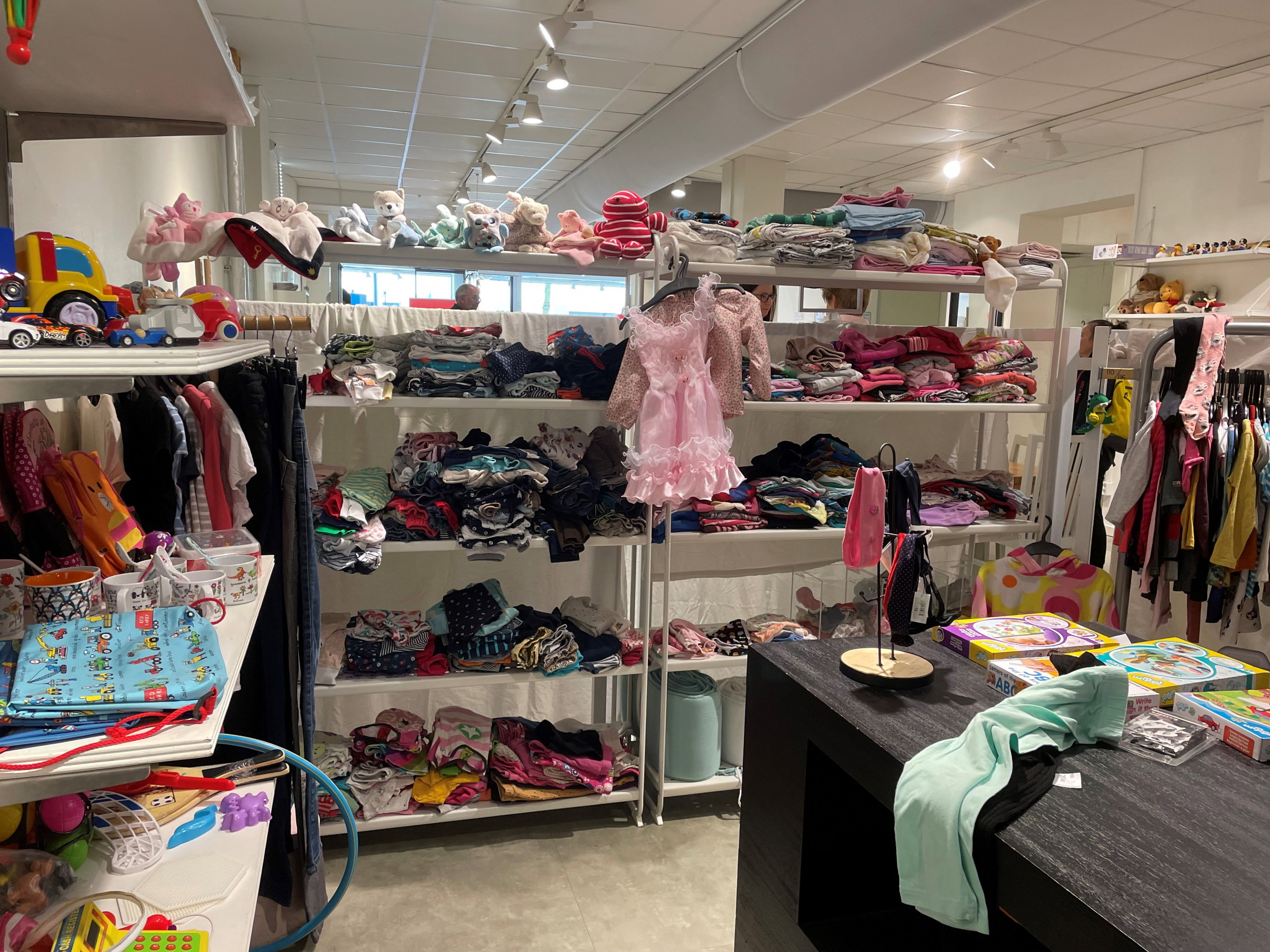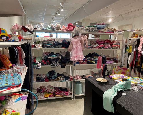 Just idag ljuder spädbarnsskrik i lokalen. Den två månader gamla flickan föddes på sjukhuset i Kristianstad. Medan hennes unga mamma tröstar och vyssjar letar mormor efter kläder som kan passa såväl stora som små.