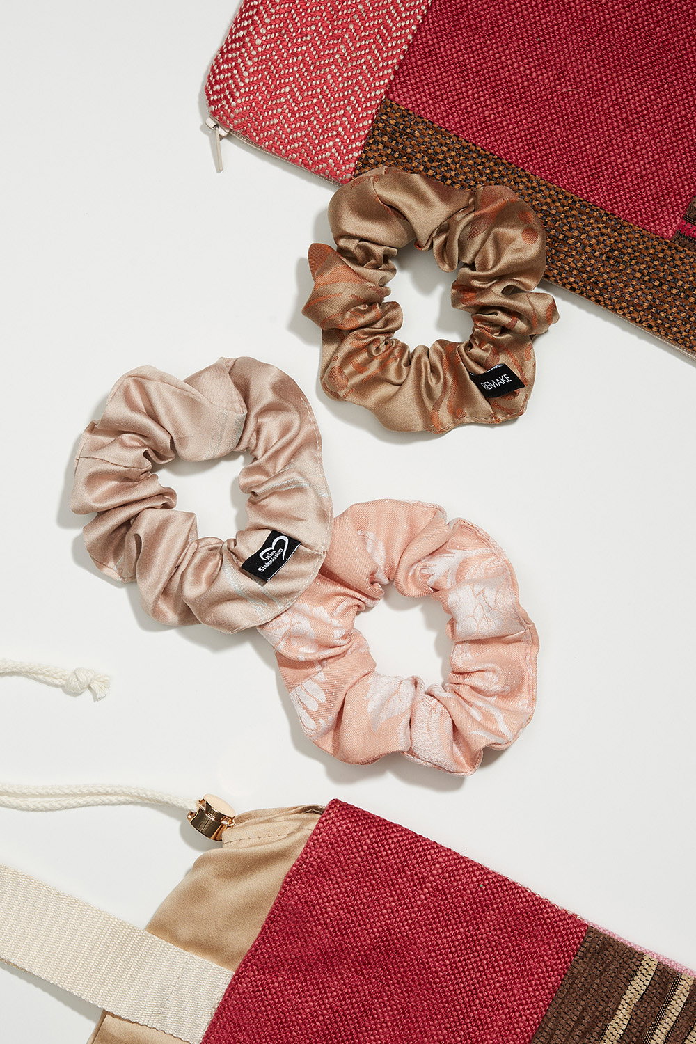 Skåne Stadsmissions återbruksvarumärke Remake har tillsammans med Glitter tagit fram scrunchies, necessärer, väskor, halsband och armband av