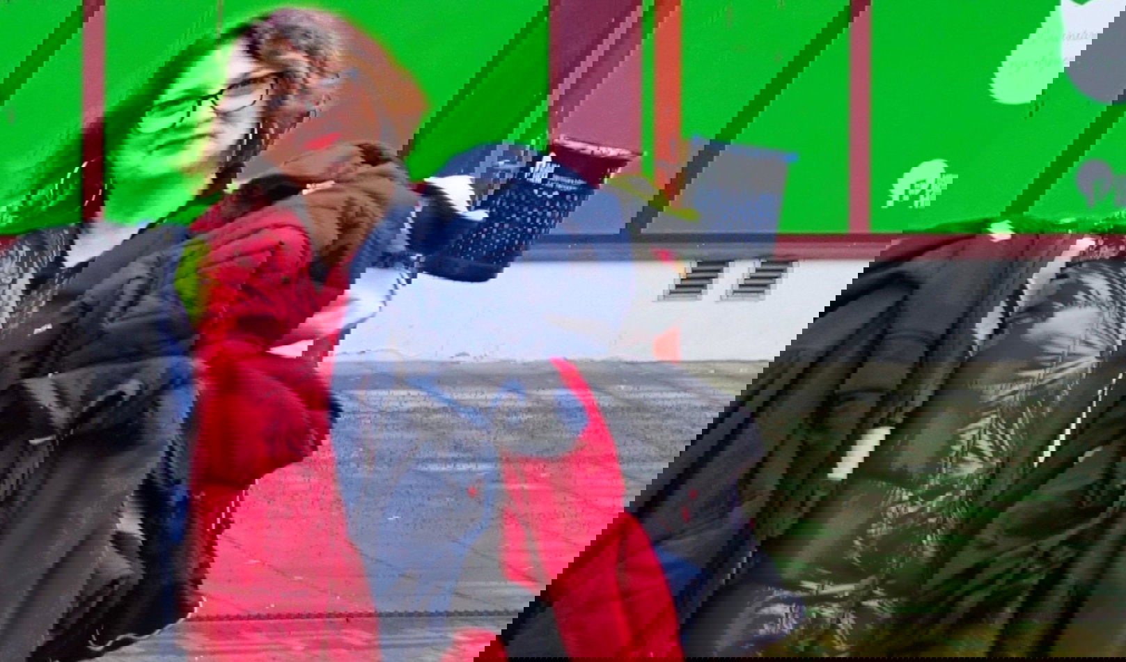 Den specialbyggda gröna väggen är full med krokar där vem som helst hänga en jacka man inte använder. Förhoppningen är att någon som behöver får en ny jacka.